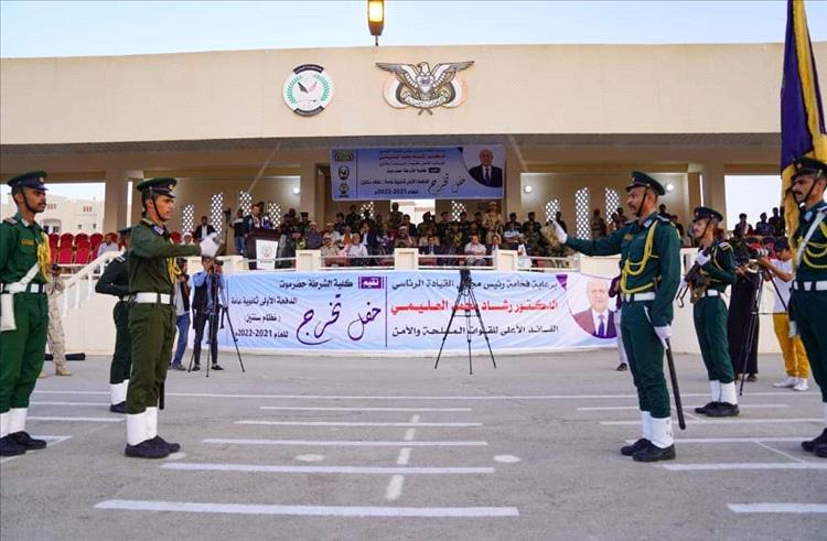 بدوره أوضح مدير كلية الشرطة بحضرموت اللواء الركن سالم عبدالله الخنبشي، أن خريجي الدفعة الأولى ثانوية عامة بلغوا 248، وقد صدر القرار الجمهوري بترقيتهم إلى رتبة ملازم ثاني، مهنئًا الخريجين بهذه الترقية، وقال: "نهدي هذا التخرّج للوطن ولمجلس القيادة الرئاسي، ولمحافظات حضرموت وشبوة والمهرة وسقطرى، وكل وطني حريص"، شاكرًا قيادة التحالف العربي بقيادة المملكة العربية السعودية ودولة الإمارات العربية المتحدة على ما قدموه ويقدمونه من دعم سخي ومتواصل للبلد بشكل عام وحضرموت وكلية الشرطة فيها على وجه الخصوص.