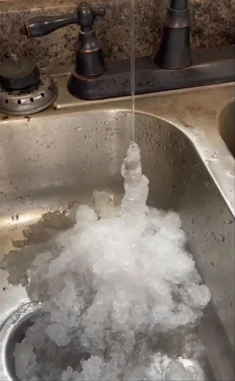 تجمد المياه في الصنابير (الحنفيات) نتيجة تدني درجة الحرارة في أمريكا (صور)