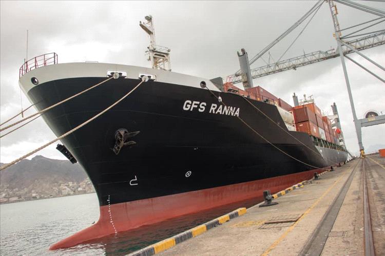 وصلت سفينة GFS RANNA في أولى رحلاتها لمحطة حاويات ميناء عدن وعلى متنها 630 حاوية .