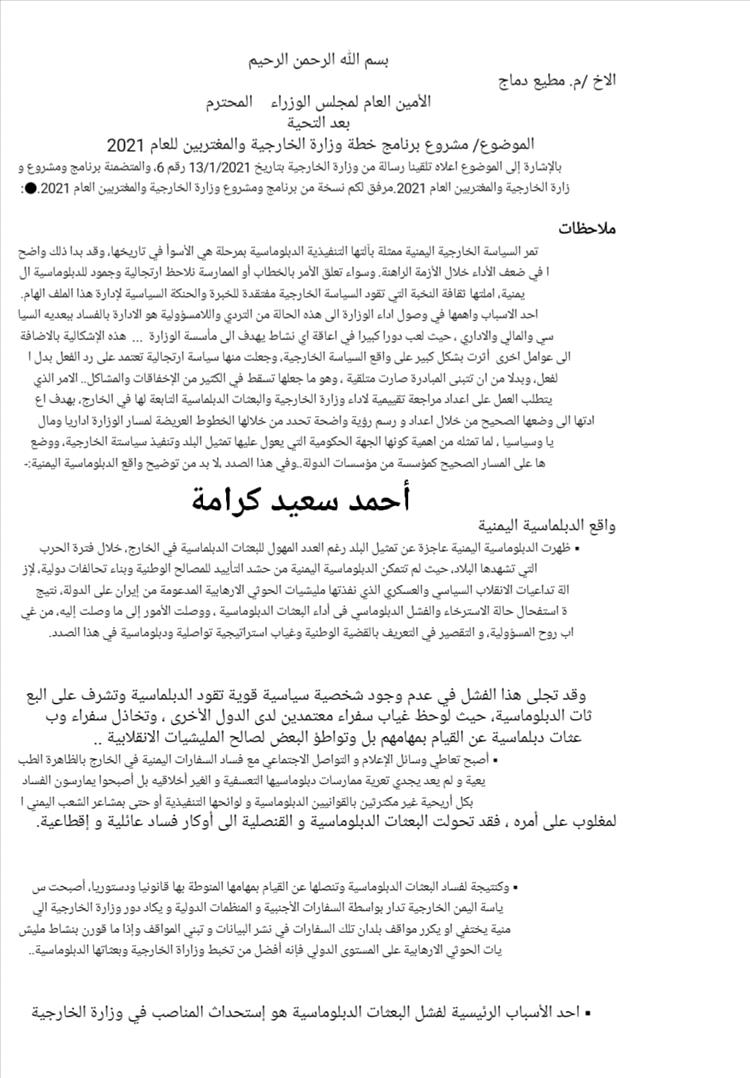 تقرير حكومي يكشف عن فشل الدبلوماسية اليمنية وتحول بعثاتها الى أوكار عائلية واقطاعية"وثيقة"