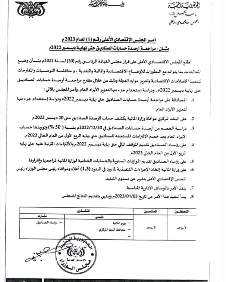 وأشار المحامي الشعيبي في تغريدة على حسابه بتويتر تعليقا على قرارات المجلس الاقتصادي الاخيرة : " المجلس الاقتصادي الاعلى ليس من صلاحياته اصدار قرارات وإوامر للحكومة هو مجرد هيئة اقتصادية تتبع الحكومة لرسم السياسات والمقترحات والى آخره" ، مؤكدا " ليس من صلاحياته دراسة قرارات المجلس الرئاسي وتنفيذها هذه صلاحيات الحكومة".