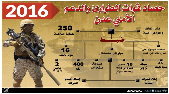 قوات الطؤارى والدعم عدن.. حصاد عام من الانجازات الامنية ( انفو جرافيك)