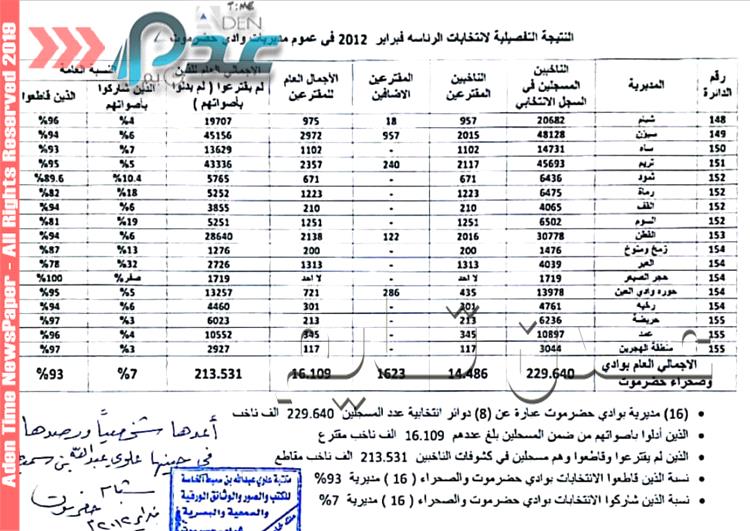 للتذكير والتوثيق مرفق جدولين عن انتخابات 2012م الرئاسية في محافظة حضرموت