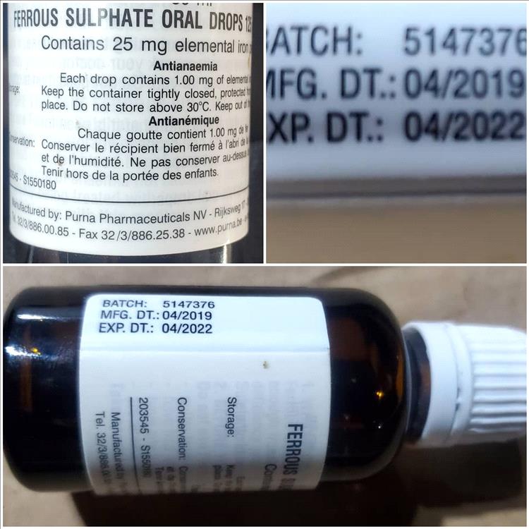 Ferrous oral drops لعلاج الأنيميا و فقر الدم ويدخل لليمن عبر المنظمات الدولية وأن الكمية وفق ما شاهدها أحد المختصين في المنظمة الوطنية لمكافحة الفساد تقدر بحوالي 5000 علبة و لازالت حتى الآن مرمية لم يمسسها أحد.
