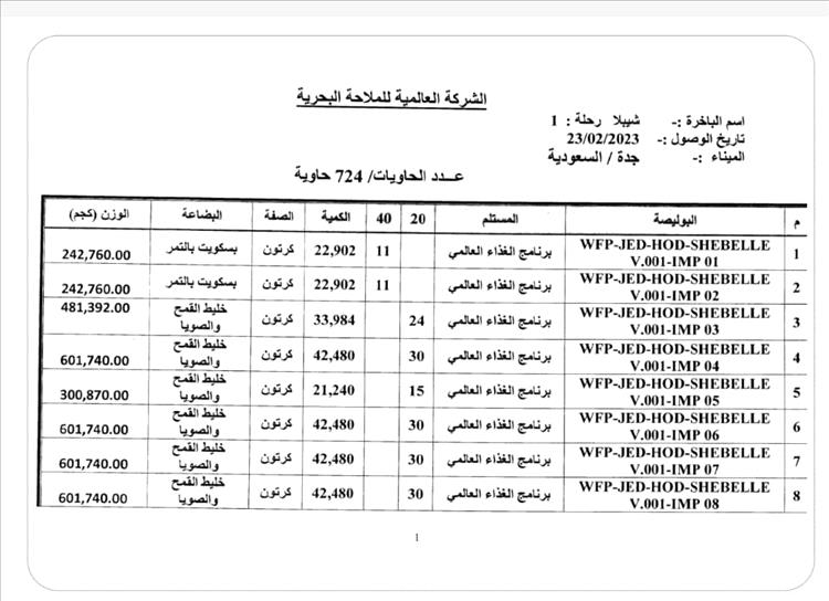 نفت مصادر ملاحية ما تردده بعض المواقع الإخبارية حول تدشين نشاط الحاويات الى ميناء الحديدة ووضحت بان الباخرة المزمع دخولها فهي تحتوي على شحنات ومواد غذائية تتبع بالكامل برنامج الأغذية العالمي ولا تعد هذه الباخرة هي الأولى بل على العكس قد سبق وان ارسل برنامج الأغذية العالمية شحنات ومساعدات إنسانية الى ميناء الحديدة.
