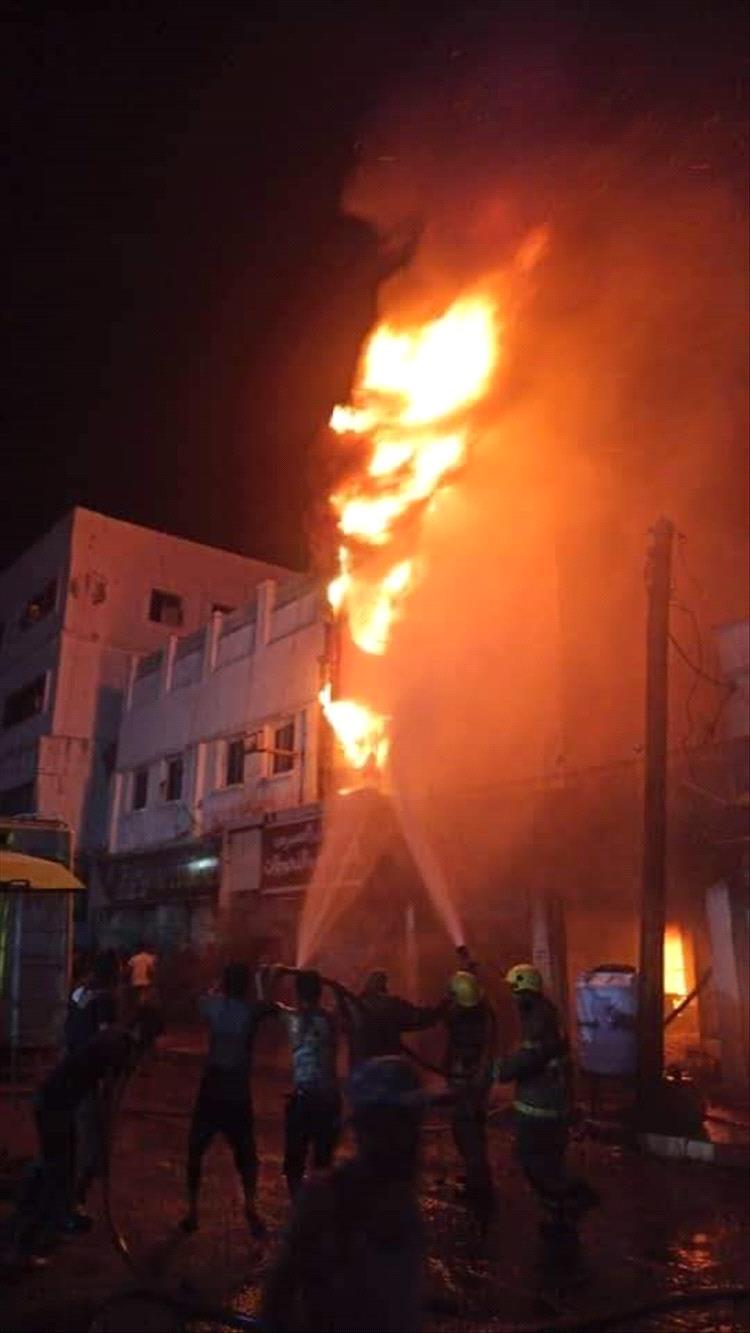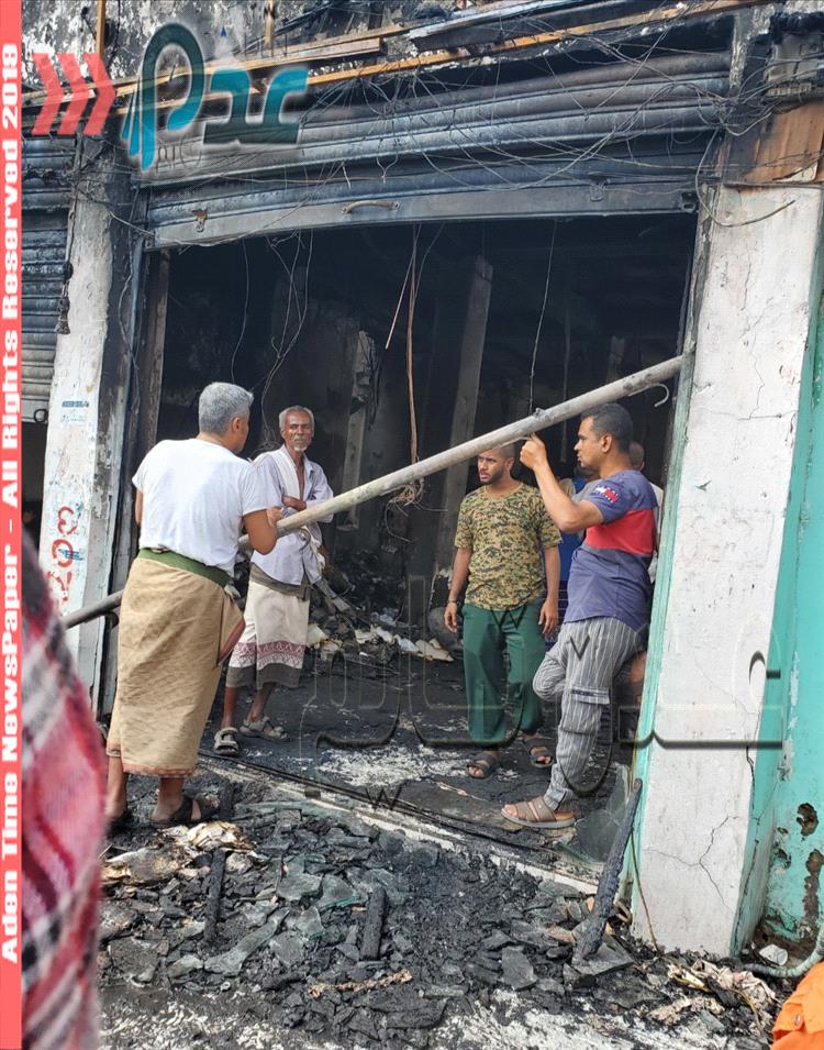 تجري حاليا عملية إخلاء للعاملين الذين التهمتهم النيران في مركز الدبعي للمفروشات في كريتر بالعاصمة عدن.