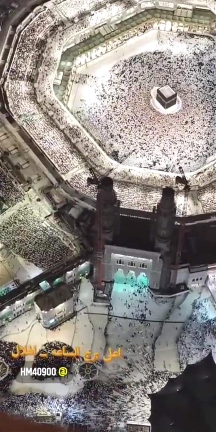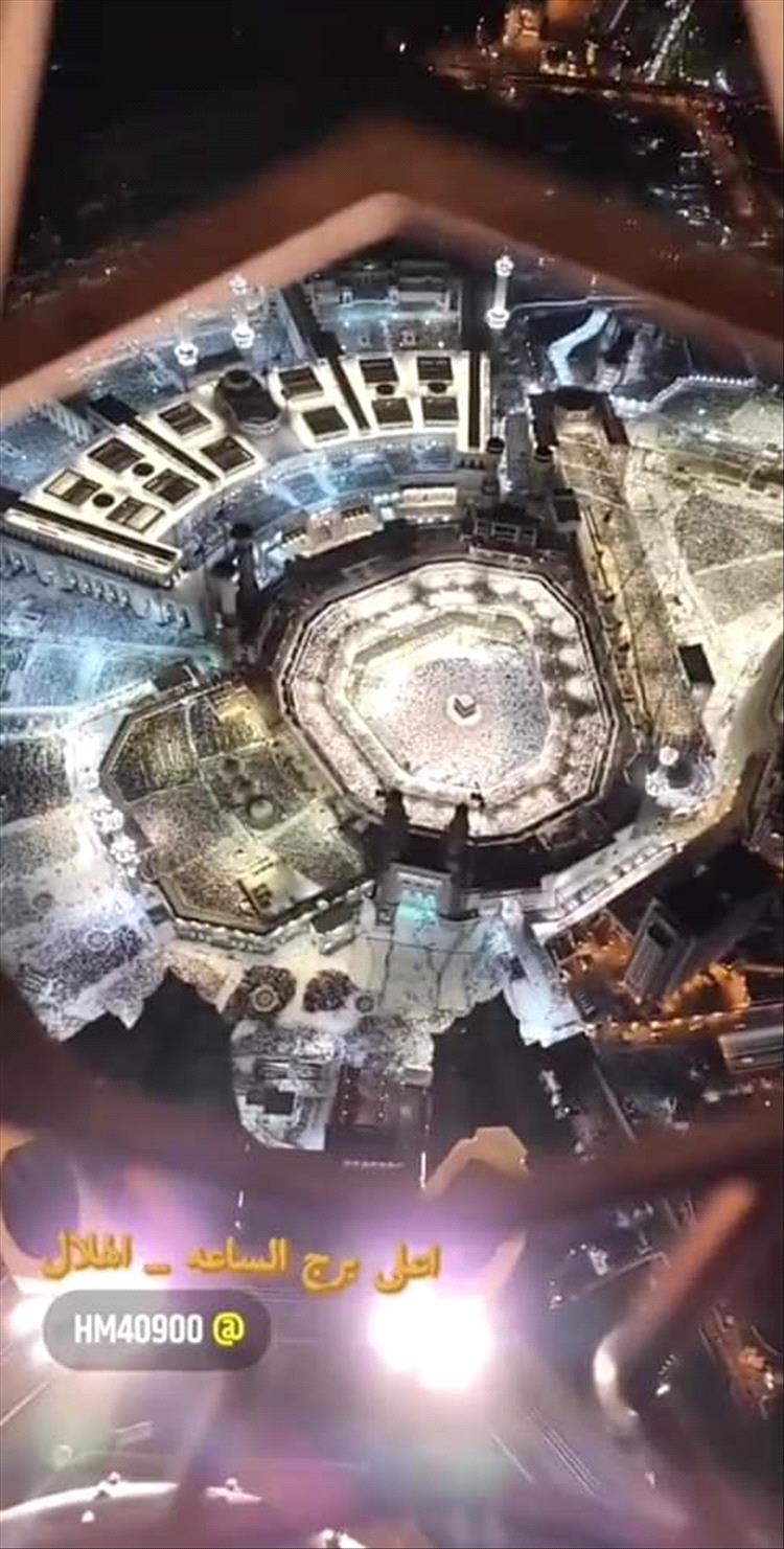 وثق مقطع فيديو متداول عبر مواقع التواصل الاجتماعي، شكل الكعبة من أعلى قمة منارة برج الساعة.