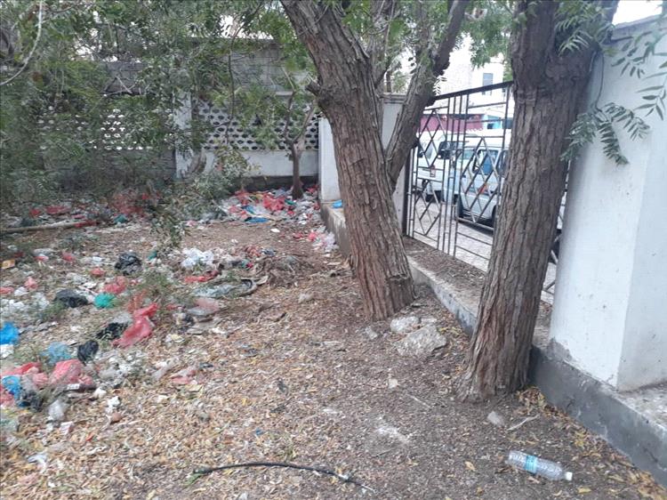 تحول حديقة المقر الى خرائب واطلال ومكب قمامة وتدخل مأمور التواهي الجديد مؤخرا في انتشال بعضها.
