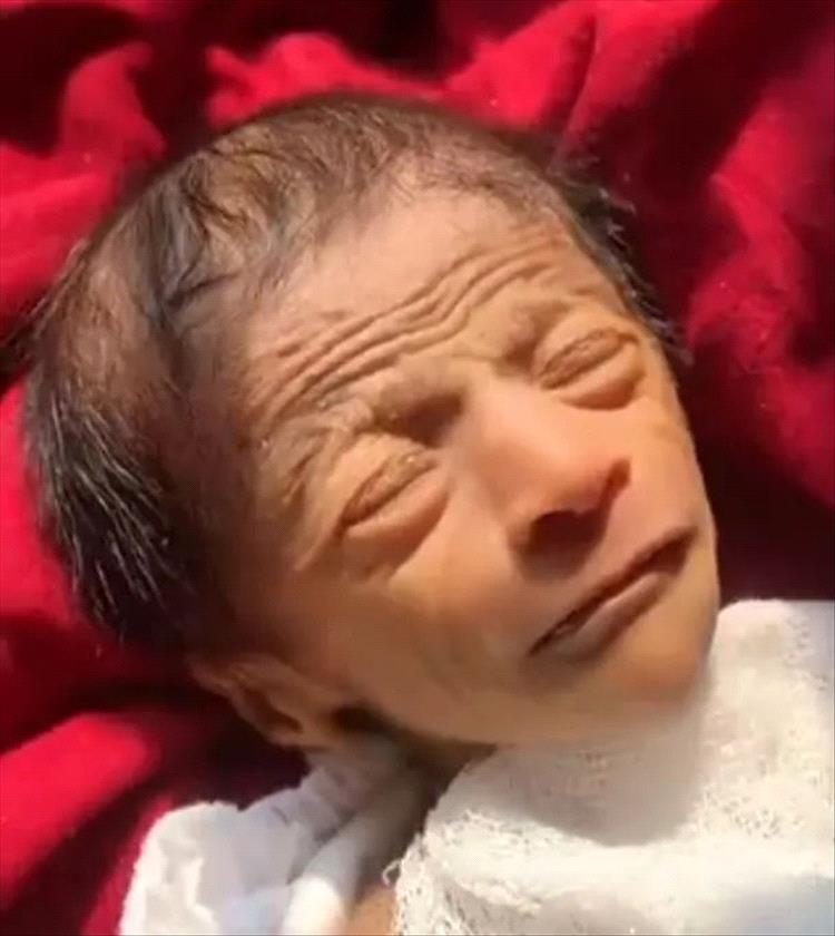 صور - ولادة طفل بوجه رجل عجوز