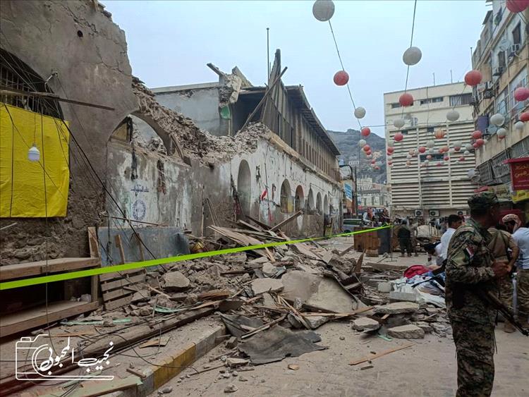 إنهار سور أقدم مبنى للجوازات في عدن يقع في شارع سوق البز في المدينة القديمة.