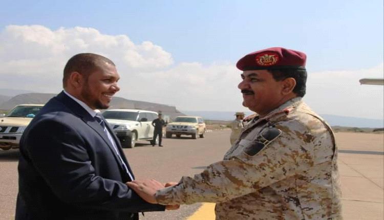 أستقبل محافظ سقطرى المهندس رأفت الثقلي، اليوم بمطار سقطرى الدولي وزير الدفاع الفريق الركن محسن محمد الداعري، والوفد المرافق له في زيارته الأولى للمحافظة .