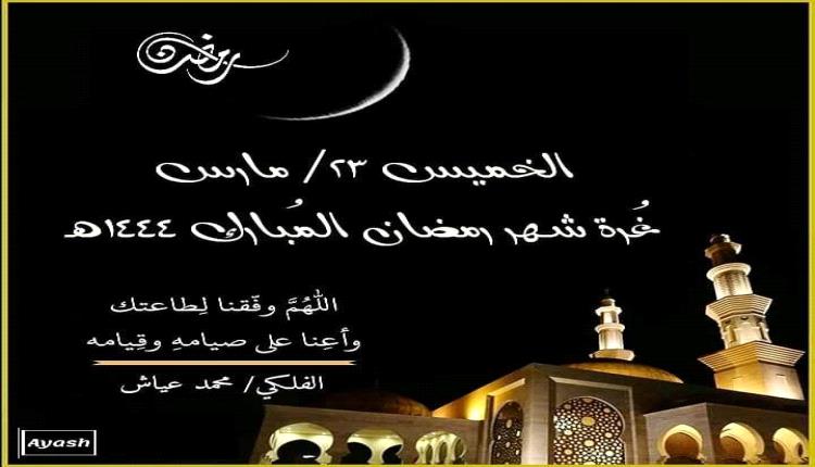 قال #الفلكي_محمد_عياش : على إختلاف مطالع القمر وإمكانية رؤية الهلال.. يكون الخميس 23/مارس، أول أيام شهر رمضان المُبارك، والأربعاء 22/مارس، هو اليوم المُتمّم والأخير من شهر شعبان، وذلك في جميع الدول العربية والإسلامية دون إستثناء.