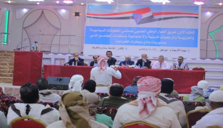 عقد فريق الحوار الوطني الجنوبي، الأربعاء، اللقاء التشاوري الأول بممثلي المكونات السياسية والحزبية والمرجعيات الدينية والاجتماعية ومنظمات المجتمع المدني بمديريات وادي وصحراء حضرموت وبحضور رئيس الهيئة التنفيذية المساعدة لانتقالي وادي حضرموت الأستاذ محمد عبد الملك الزبيدي.