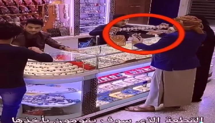 تداول نشطاء مواقع التواصل الاجتماعي، مقطع فيديو، لامرأة منتقبة، تغفل البائع وتسرق حزام من الذهب من داخل أحد محلات بيع المجوهرات في صنعاء باليمن.