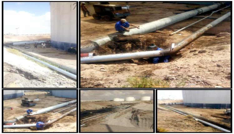 ١٠ - جاري العمل في اعادة تاهيل وصيانة واستبدال الانابيب الممتدة بين ميناء الزيت ومجمعات الخزانات في المصفاة والذي تضررت خلال الحرب