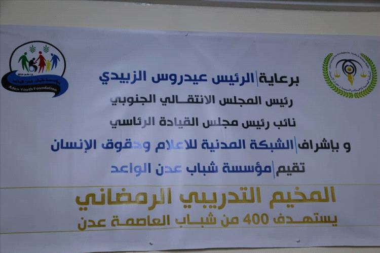 دشنت مؤسسة شباب عدن الواعد و بالشراكة مع الشبكة المدنية للإعلام والتنمية وحقوق الإنسان مساء السبت برنامج المخيم التدريبي الثاني لعدد 400 متدرب و متدربة من أبناء مديريات العاصمة عدن .