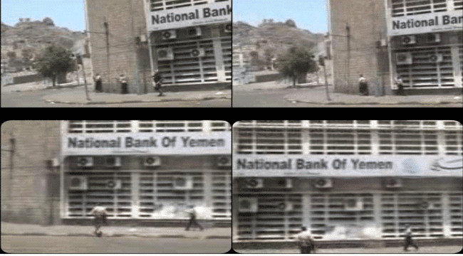 سقط احد الشباب جريحا بجانب الشباك الواقع امام البنك الاهلي من جهة ساعة بيج بن الصغرى ولم يستطع احد الوصول اليه لانه في مرمى القناصة وكان هناك ايضا بعض الشباب المحاصرين تحت البنك لم يستطيعوا التحرك لان القناصة كانوا من جهتين (مبنى التأمينات وجبل البادري )