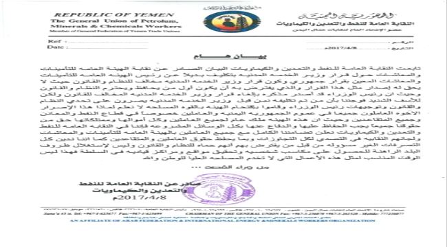 اصدرت عدة نقابات في عدد من الوزارات بصنعاء بيانا تضامنت فيه مع الهيئة العامة للتأمينات والمعاشات، منددة بممارسات من قبل جماعة الحوثي، واقتحام مسلحيهم الوزارة بالقوة وكسر اقفال بعض المكاتب.