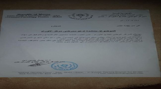 منتسبو مركز الاورام بعدن يوجهون مناشدة عاجلة