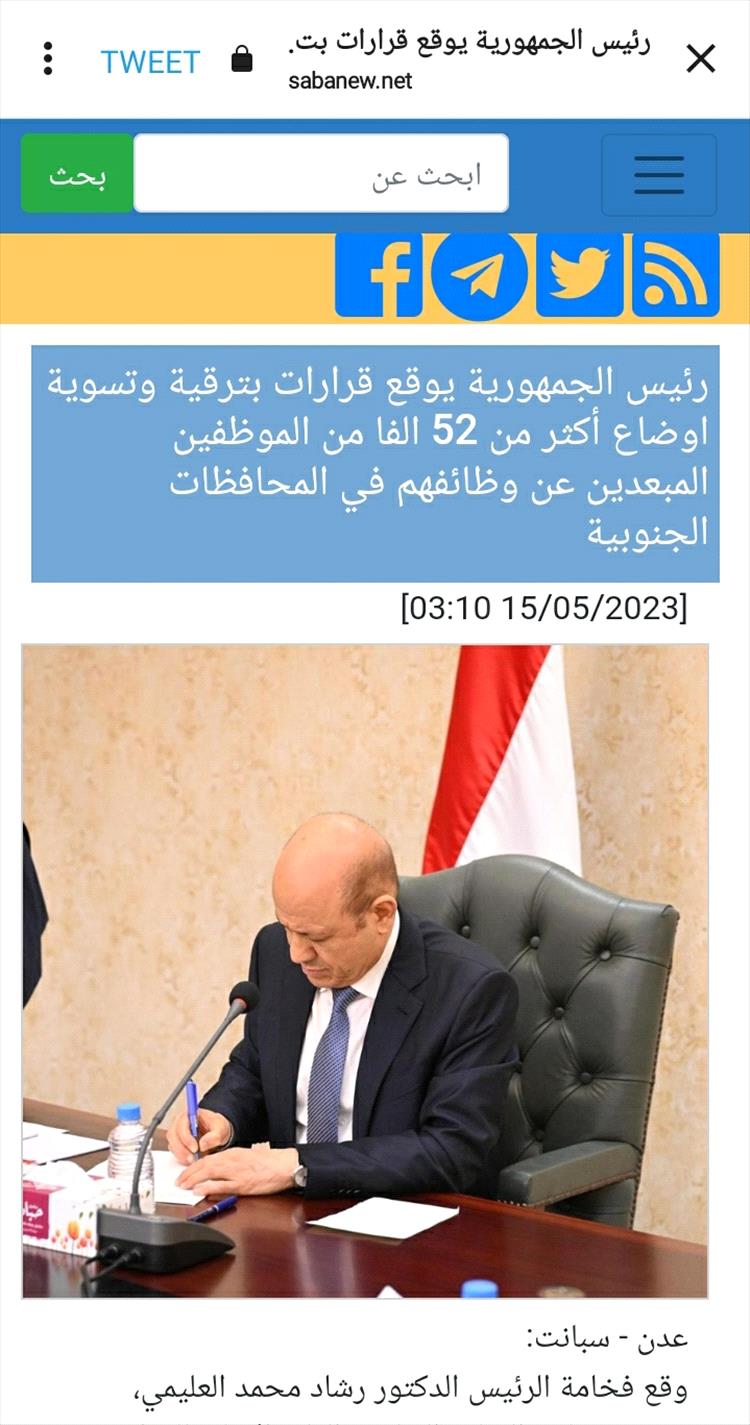 وقعت وكالة الأنباء اليمنية سبأ نت في خطأ فادح حيث نشرت خبرًا يحمل عنوان "رئيس الجمهورية يوقع قرارات بترقية وتسوية اوضاع أكثر من 52 الفا من الموظفين المبعدين"، ونال الخبر انتقادات واسعة بعد أن أُسقطت صفة رئيس مجلس القيادة الرئاسي واستبدلت برئيس الجمهورية.