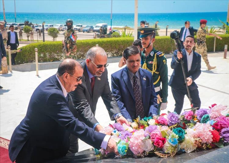 وضع الرئيس القائد عيدروس قاسم الزُبيدي رئيس المجلس الانتقالي الجنوبي، نائب رئيس مجلس القيادة الرئاسي، واللواء الركن فرج سالمين البحسني نائب رئيس المجلس الانتقالي الجنوبي، واللواء الركن أحمد سعيد بن بريك نائب رئيس المجلس الانتقالي الجنوبي، اليوم بمدينة المكلا، إكليلًا من الورد على ضريح الجندي المجهول بالنصب التذكاري وساحة شهداء حضرموت.