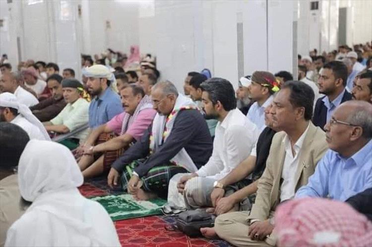 وكان الرئيس الزُبيدي، قد استمع بمعية جموع المصلين إلى خطبتي الجمعة التي ألقاها الشيخ صالح الشرفي، وحث فيها على التآخي والتآزر ونبذ الفرقة، ورص الصفوف، وإعلاء لغة الحوار لحل الخلافات والتباينات كقيمة دينية وإنسانية وحضارية.