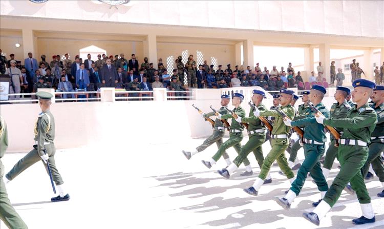 وقدّم الطلاب عرضًا عسكريًا مهيبًا على أنغام الفرقة الموسيقية في ساحة العرض، الذي تقدمه قائد طابور العرض العسكري وحملة الأعلام، ومجموعات العرض، الذين استعرضوا قوتهم وجاهزيتهم لتنفيذ المهام الأمنية الوطنية، وإلقاء التحية على الرئيس الزُبيدي ونائبه.