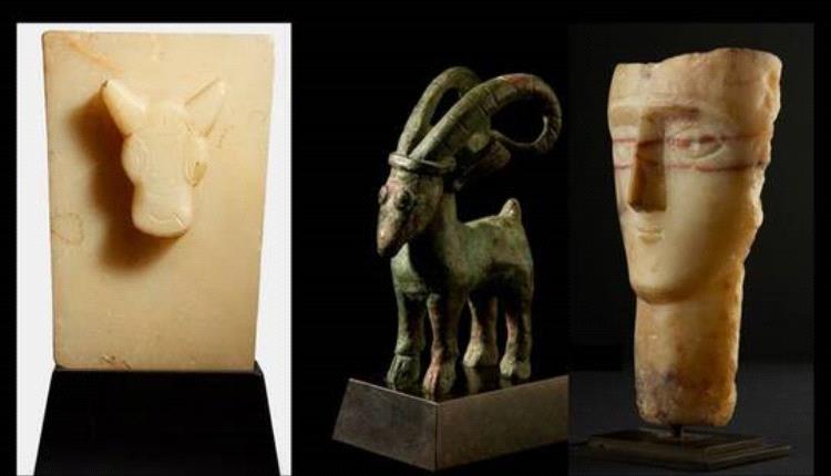 وأكد الخبير اليمني "في نفس المزاد يعرض وعل برونزي مميز من منتصف الألفية الأولى قبل الميلاد، مصنوع من البرونز المصبوب"، مضيفا: "كما تعرض لوحة تذكارية من المرمر المنحوت، على شكل شبه منحرف، بنقش بارز مع رأس مركزي لثور بملامح منقوشة، من القرن الثالث قبل الميلاد، وبحسب وصف المزاد "كان الثور رمزا مهما في مملكة سبأ القديمة الواقعة في اليمن اليوم".
