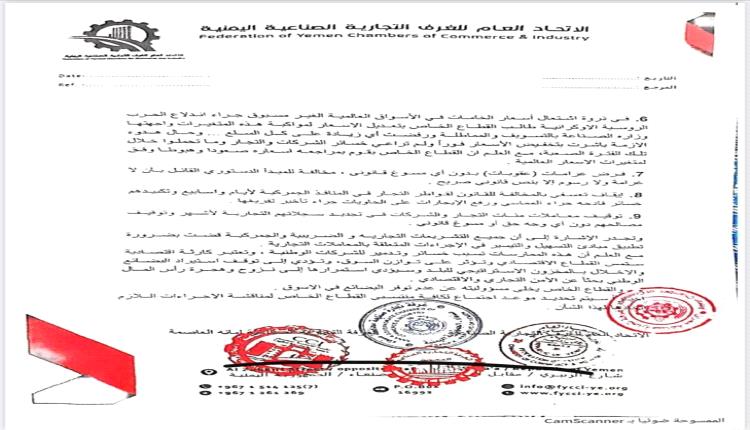 الاتحاد العام للغرف التجارية يستنكر ما يتعرض له القطاع الخاص من ممارسات تعسفية في صنعاء