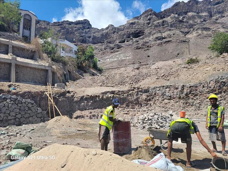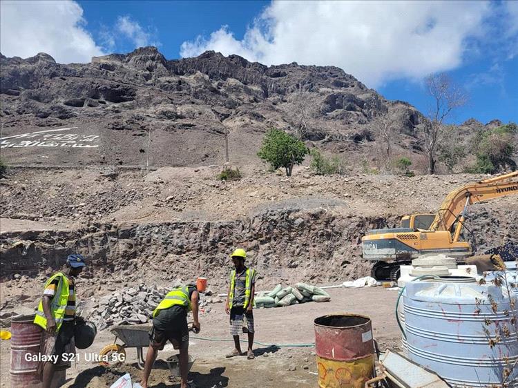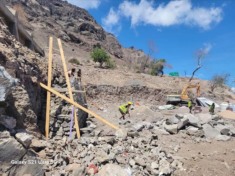 تجري حاليا في الطريق الرابط بين بين مديريتي صيرة والمعلا مشروع بناء شلالات ومدرجات هضبة عقبة عدن .
