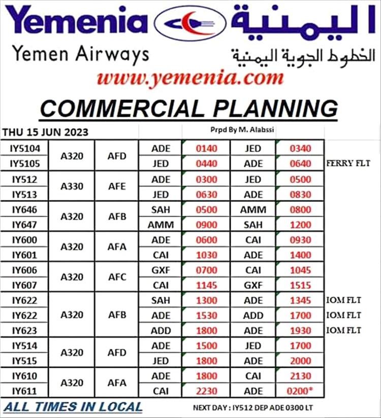 جدول مواعيد اقلاع رحلات طيران اليمنية ليوم غد الخميس كالتالي: