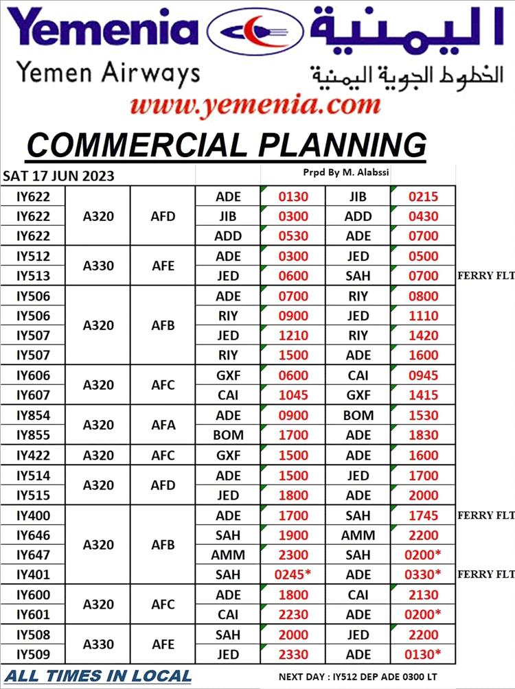 جدول مواعيد اقلاع رحلات طيران اليمنية ليوم غد السبت كالتالي: