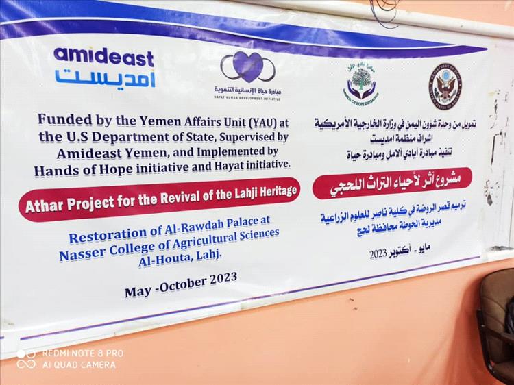 تدشين مشروع اثر لإحياء التراث اللحجي بترميم قصر الروضة بكلية ناصر للعلوم الزراعية بلحج
