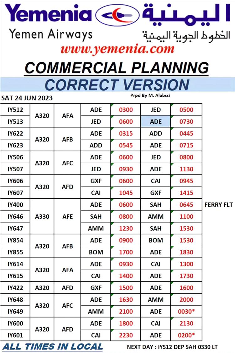 مواعيد اقلاع رحلات طيران اليمنية ليوم غد السبت كالتالي: