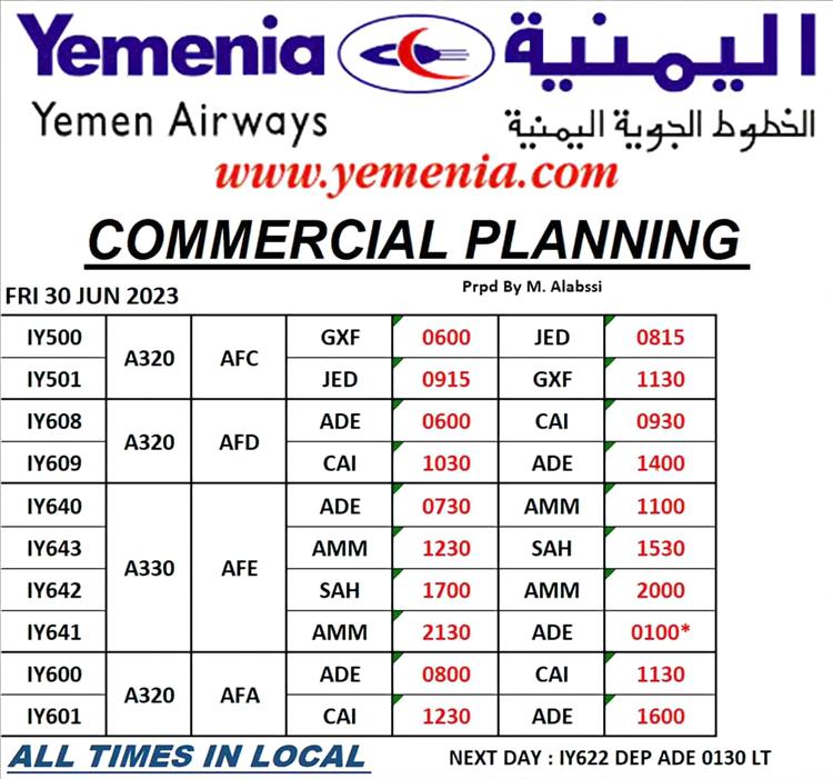 جدول مواعيد اقلاع رحلات طيران اليمنية ليوم غد الجمعة كالتالي: