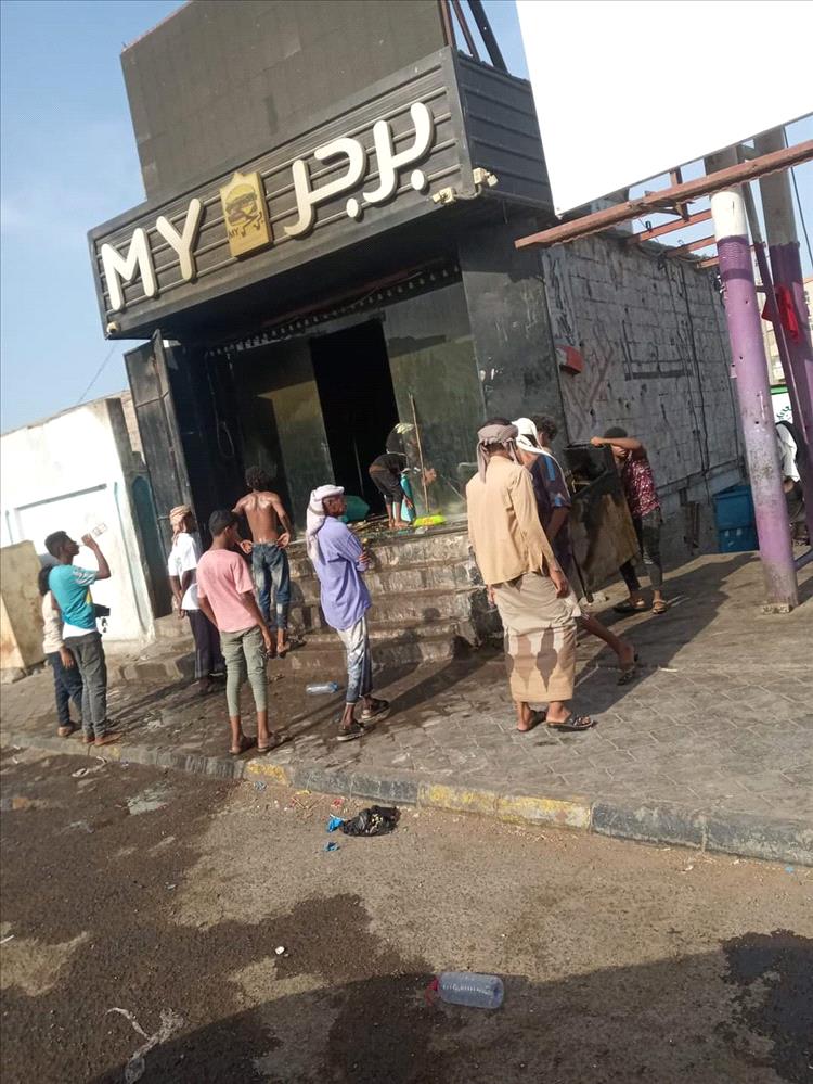 اندلع الاحد حريق بمطعم تقديم الاطعمة السريعة في عدن.