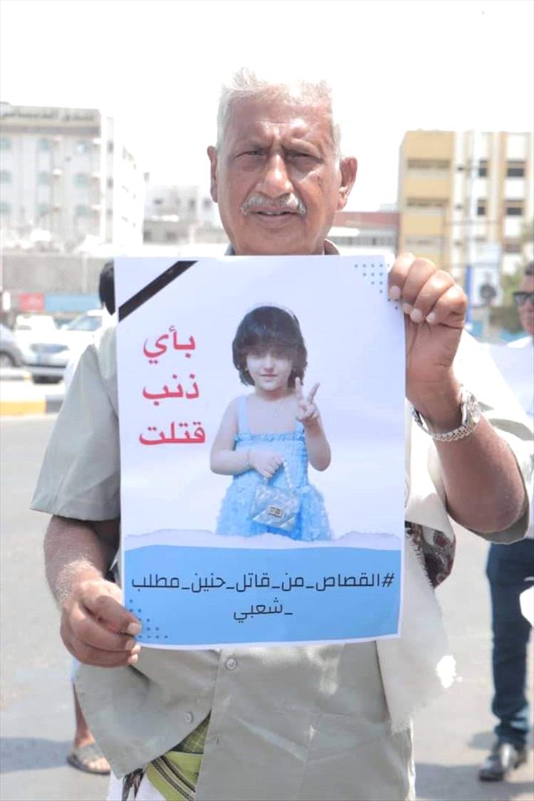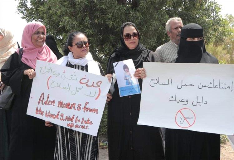 وقف اليوم عدد من ممثلي منظمات المجتمع المدني "لا لحمل السلاح في مدينة عدن" وتضامناً مع قرارات الامن بمنع حمل والتجوال فيه واسرة الطفلة حنين البكري.