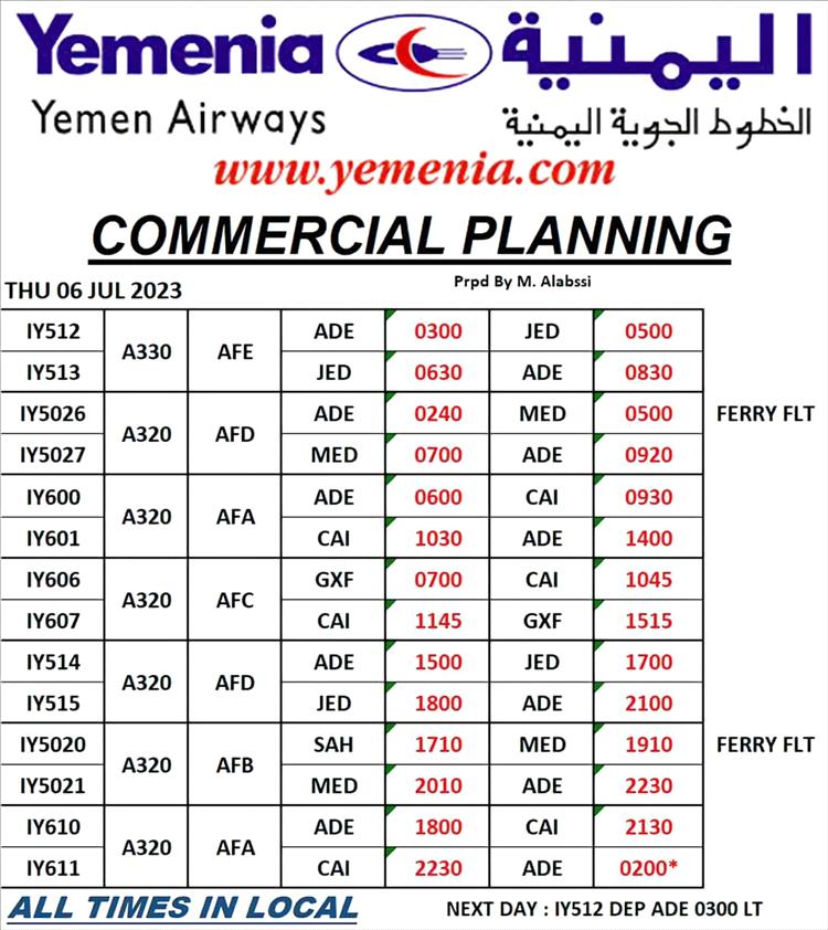 جدول مواعيد اقلاع رحلات طيران اليمنية ليوم غد الخميس كالتالي: