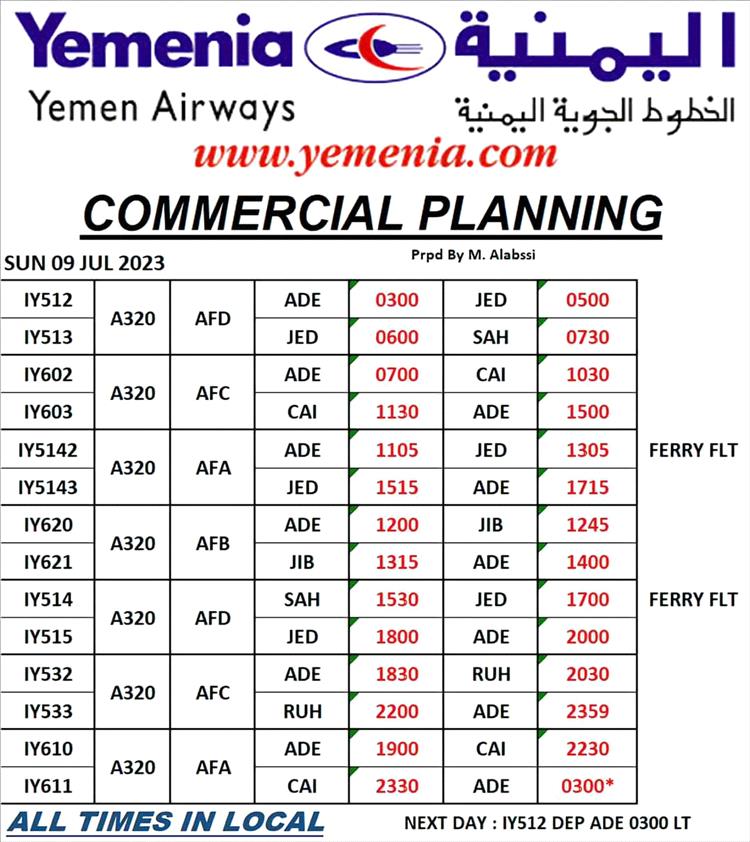 جدول مواعيد اقلاع رحلات طيران اليمنية ليوم غد الاحد كالتالي: