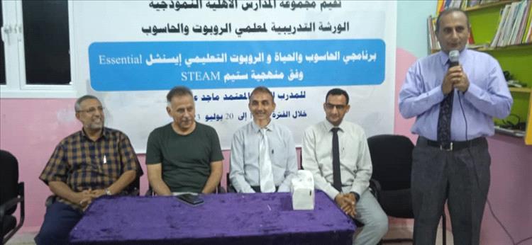 في حفل الختام الذي حضره مدير عام مديرية المعلا أ. عبدالرحيم جاوي و أ. عبد الناصر العماد و أ. إيهاب طاهر مدير إدارة مركز إنتاج الوسائل التعليمية و أ . وهيب احمد عبدالله رئيس قسم التعليم الأهلي والخاص في تربية م / المعلا وأ. برهان مانع المشرف لمجموعة المدارس النموذجية وأ. رياض كمال الدين مدير مدرسة نماء المعلا و أ. وائل سلام والوكلاء المبدعين أ. اسماء وأ. نعيم ، استعرض مدرب البرنامج التدريبي أ. الخبير الدولي المعتمد ماجد عمير قائلا: شكرا للجميع المدارس المشاركة من المعلمين المتدربين وقبول التحدي والإصرار والتميز على كيفية التدريب النوعي بمنهجية استيم STEAM وبرنامج الحاسوب والحياة والروبوت التعليمي وتنفيذ أهداف البرنامج التطبيقي والنظري فقد نجحتم اليوم في البرنامج من أجل تزويد الطلاب بالمهارات والتفكير الإبداعي والعمل الجماعي ومواكبة مجال التكنولوجيا والهندسة والرياضيات واليوم عرفتم ماذا نريد من البرنامج التدريبي وكيف يترجم على أرض الواقع المدرسي وخلق المهارات للطلاب .