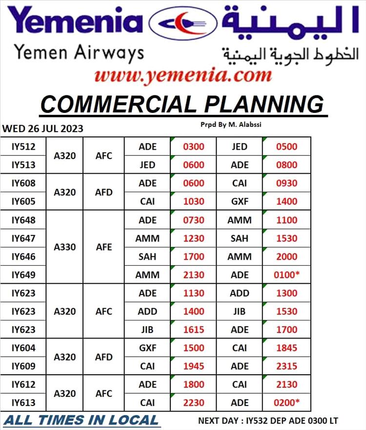 جدول مواعيد اقلاع رحلات طيران اليمنية ليوم غد الاربعاء كالتالي: