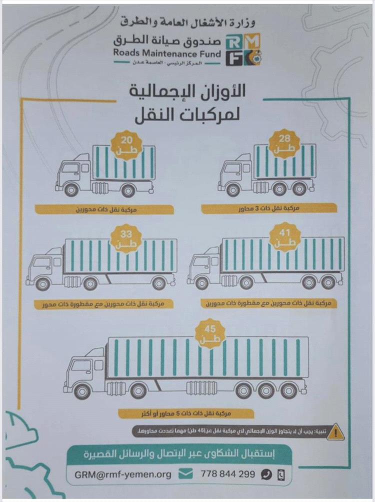 ومن المقرَّر أن يُدشِّن صندوق صيانة الطُرُق، في: 30/ يوليو، الجاري حملةً لضبط الأوزان بعد أن حثَّهم النائب المحرمي على تنفيذها، ولا سيَّما بعد تزايد الأضرار في الخطوط العامة؛ بسبب الأحمال الزائدة، وتكفَّل المحرمي بتأمين تنفيذ تلك الحملة وتذليل الصعاب أمامها.