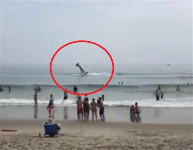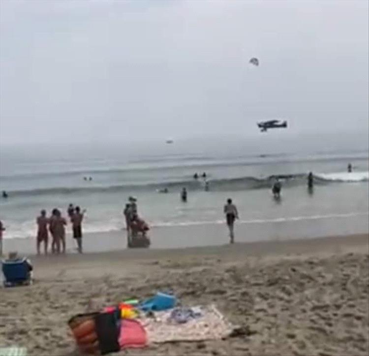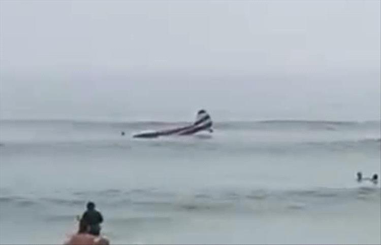 بالصور .. لحظة تحطم طائرة على شاطئ مزدحم بالناس