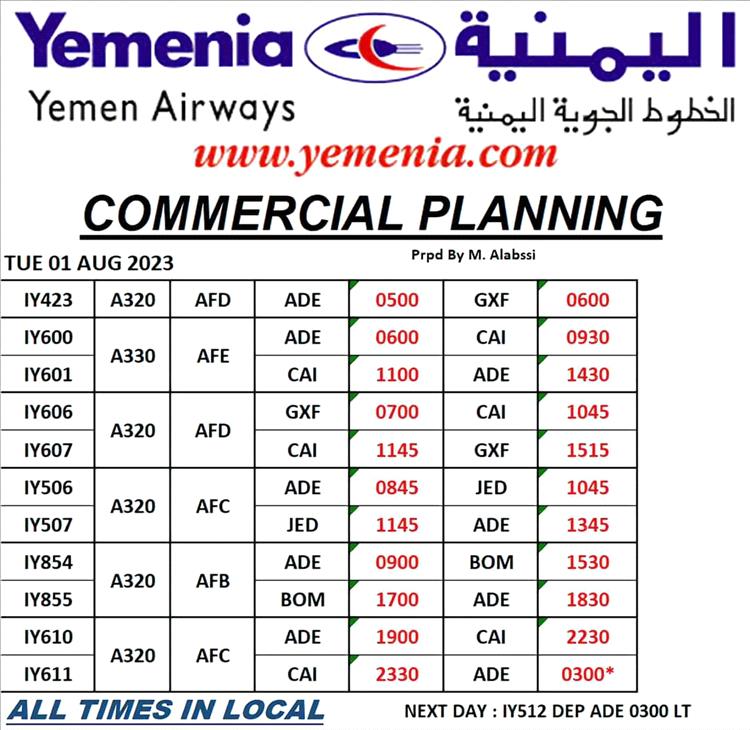 جدول مواعيد اقلاع رحلات طيران اليمنية ليوم غد الثلاثاء كالتالي: