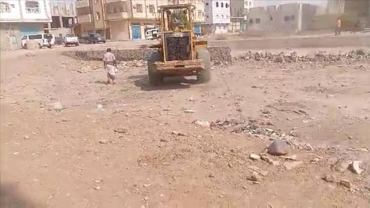 صور - حملة لإزالة عشوائيات وتعديات طالت مواقع خدمية في منطقة بئر فضل بعدن