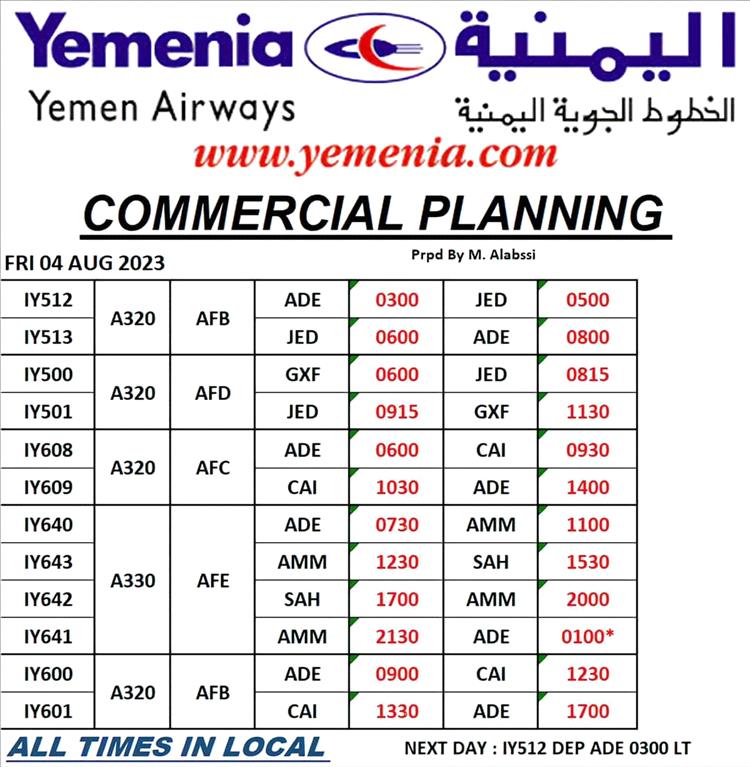 جدول مواعيد اقلاع رحلات طيران اليمنية ليوم غد الجمعة كالتالي: