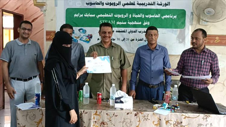 وفي ختام البرنامج التدريبي حضور مدير إدارة التربية والتعليم م/المنصورة أ. علي علوي و أ. علي الشمسي رئيس قسم التعليم الأهلي و أ. محمد فيصل رئيس قسم الأنشطة المدرسية.