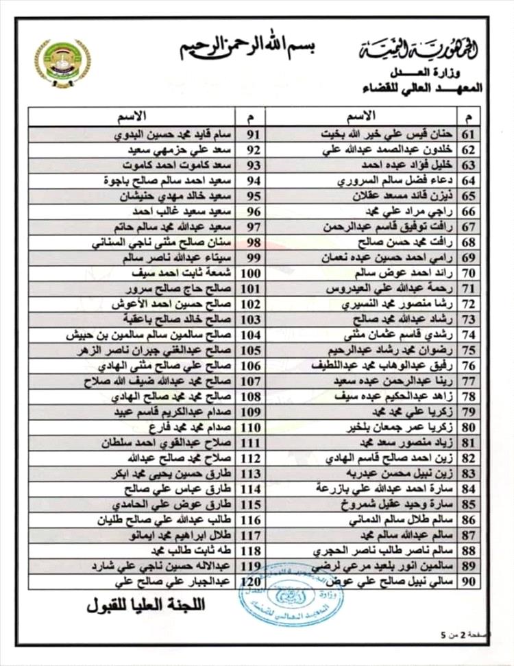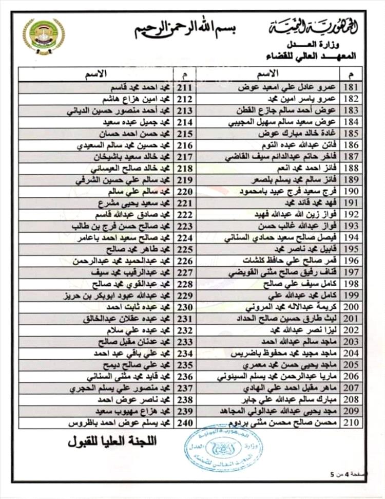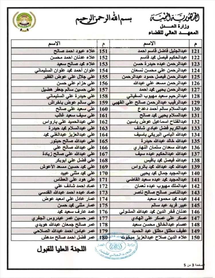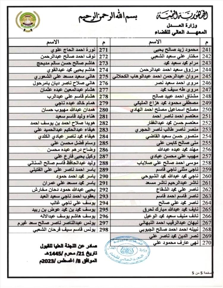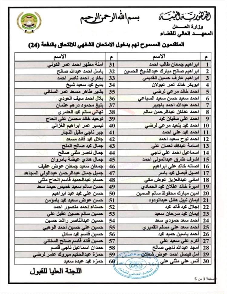 وثائق - أسماء المقبولين في المعهد العالي للقضاء