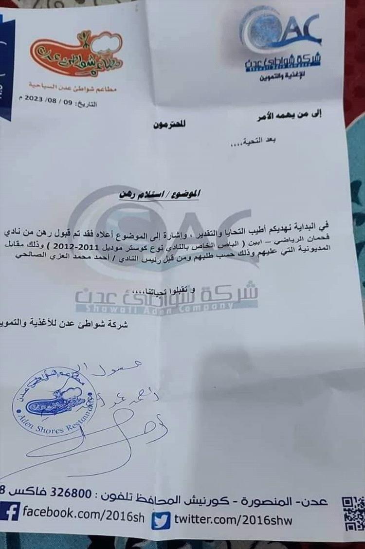 وبحسب الوثيقة التي نشرتها إدارة شركة شواطئ عدن ان الاحتفاظ بالحافلة جاء بطلب من إدارة النادي فقامت إدارة المطعم بقبول طلب إدارة النادي