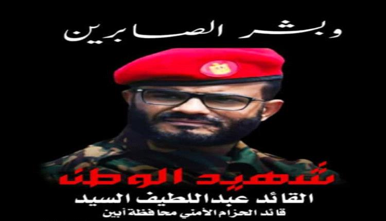فجعت الأرض الجنوبية قاطبة من أقصاها إلى أقصاها يومنا الخميس 10 أغسطس 2023 بخبر إستشهاد أحد أعمدة القوات المسلحة الجنوبية قائد الحزام الأمني بمحافظة أبين / عبداللطيف السيد اثر تفجير إرهابي استهدفهم بمنطقة وادي عومران بابين .